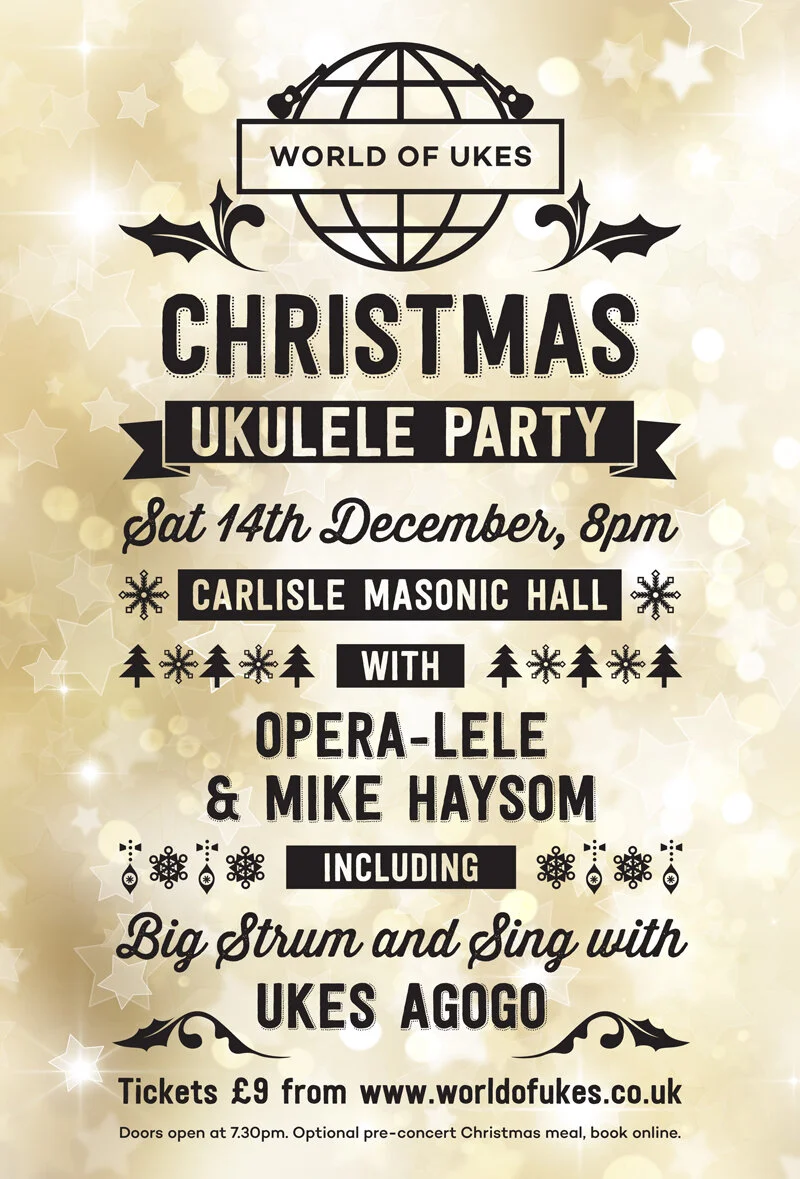Held at Carlisle Masonic Hall, Portland Square, Carlisle, this will be a really fun and festive evening featuring a big strum and singalong with local group Ukes Agogo (bring your ukes!), beautiful instrumentals from Galloway-based Mike Haysom, and plenty of fun with Opera-lele!