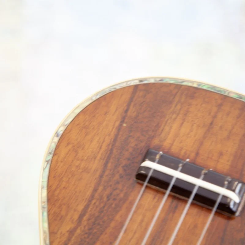This is a pretty looking ukulele, traded in as a genuine Shinji Takahashi, luthier-made ukulele. I have contacted this luthier and he confirms it is not made by him, despite being labelled as such inside. I suspected it could be the case as, while it’s skillfully made and decorated, it sounds OK, but not amazing. It’s fairly heavily built and therefore doesn’t have a huge voice. I was taken in by the deception at first and considered it an ‘early work’… akin to Van Gogh’s childhood paintings in nursery school - but it is not made by the ‘grand master’ Shinji at all.